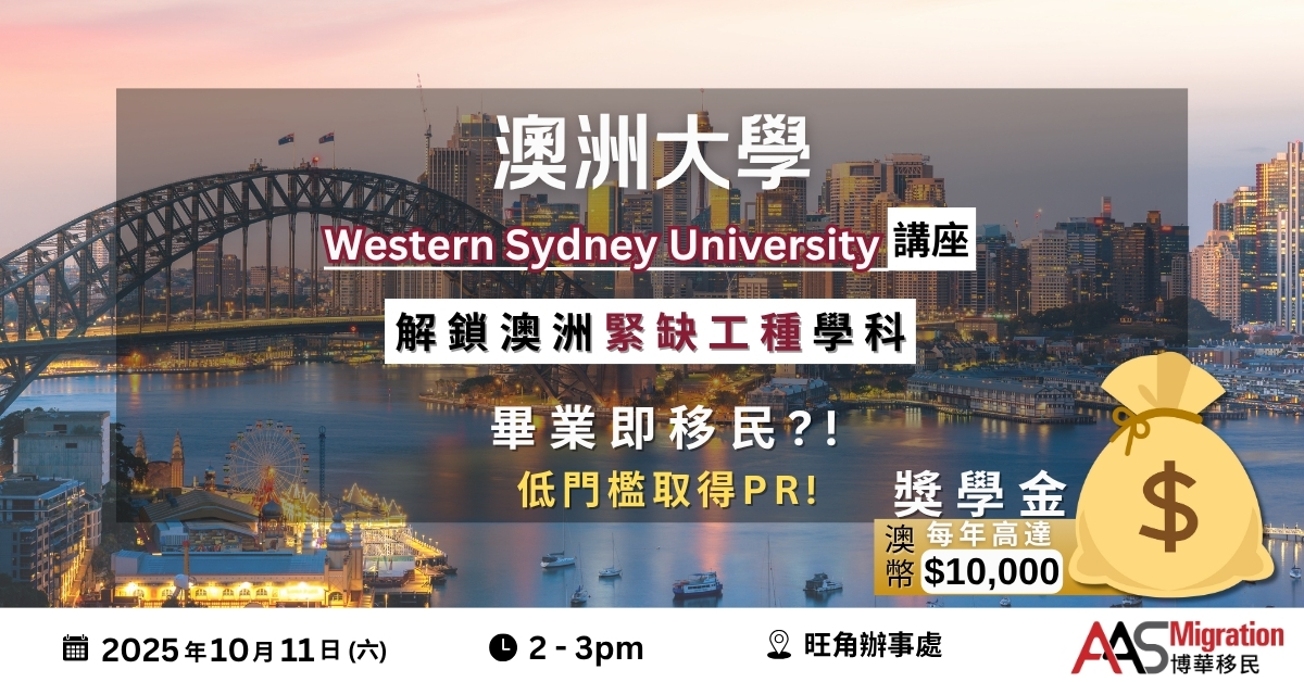 (4) 澳洲Hong Kong Stream永居移民途徑,規劃「讀書+居住/工作+移民」長遠藍圖,門檻極低!
